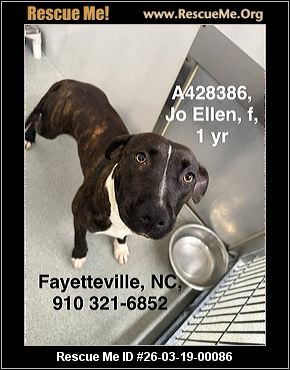 This precious 1 year old dog could be euthanized at any minute as she is in an overcrowded shelter in Fayetteville